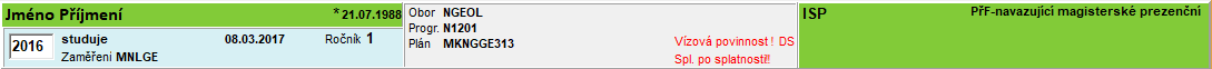 U studentů doktorského studia se v hlavičce zobrazují údaje týkající se PHD ISP: