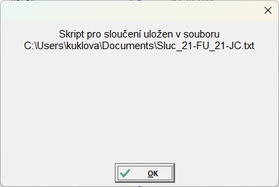 Program uloží do adresáře pro dokumenty soubor obsahující scripty pro aktualizaci katedry v existujících datech. Na UK je třeba domluvit s konzultanty jeho spuštění.