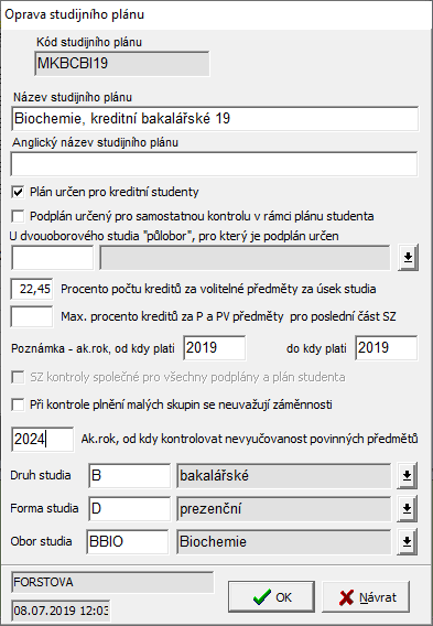 - Kód studijního plánu - v opravě needitovatelná položka