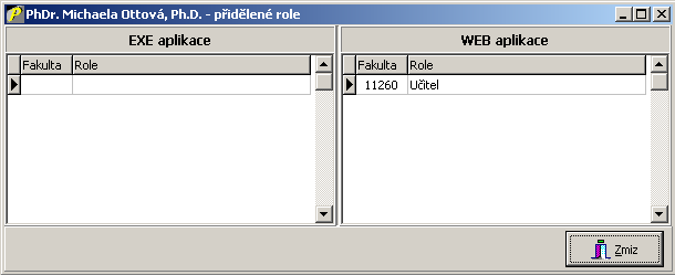 - v případě, že žádnou roli nemá, zobrazí se hláška "osoba nemá žádné přidělené role"