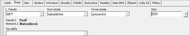 V případě, že student studuje mezifakultní obor, je na stránce Škola zobrazena druhá fakulta a referentka z této fakulty.