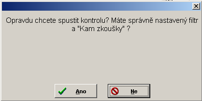 Volbou Hromadné/Hromadný tisk výsledků kontrol ...  provedeme kontrolu vyfiltrovaných studentů podle předem určených kontrol. Postup je následující: