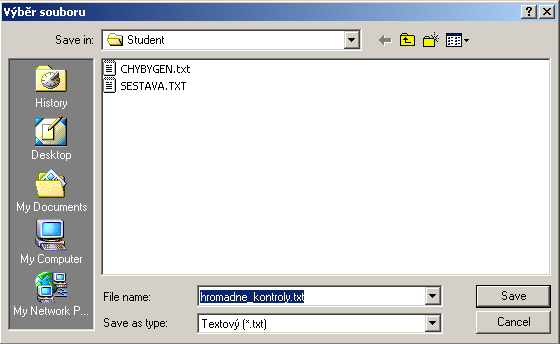 Po potvrzení se provedou kontroly a výsledek se uloží na místo určené v dialogu: