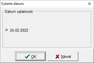 Před generováním podkladu pro účetnictví musí uživatel ještě vybrat datum splatnosti, ke kterému se má zúčtovací listina vztahovat: