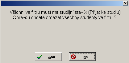 - objeví se okno, které ještě připomene, kteří studenti mají být ve filtru a zeptá se uživatele, zda se má opravdu pokračovat...