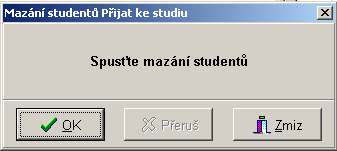 - po kladné odpovědi se objeví okno Mazání studentů Přijat ke studiu, kde po stisku tlačítka OK začne už samotné mazání