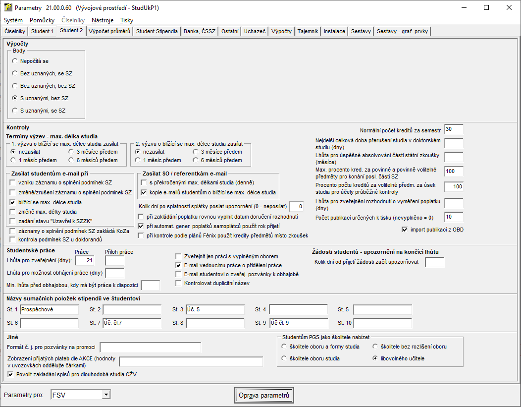 Parametry » Nastavení parametrů systému » Parametry STUDENT 2