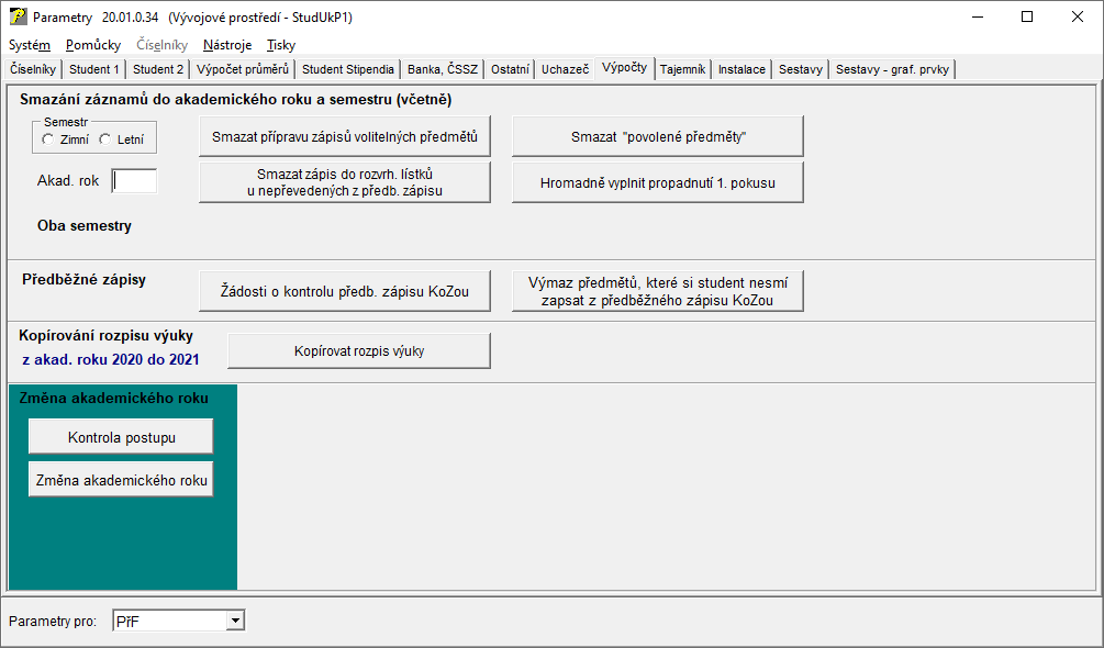 Změna akademického roku - změna se dělá po postupu všech studentů do dalšího akademického roku.