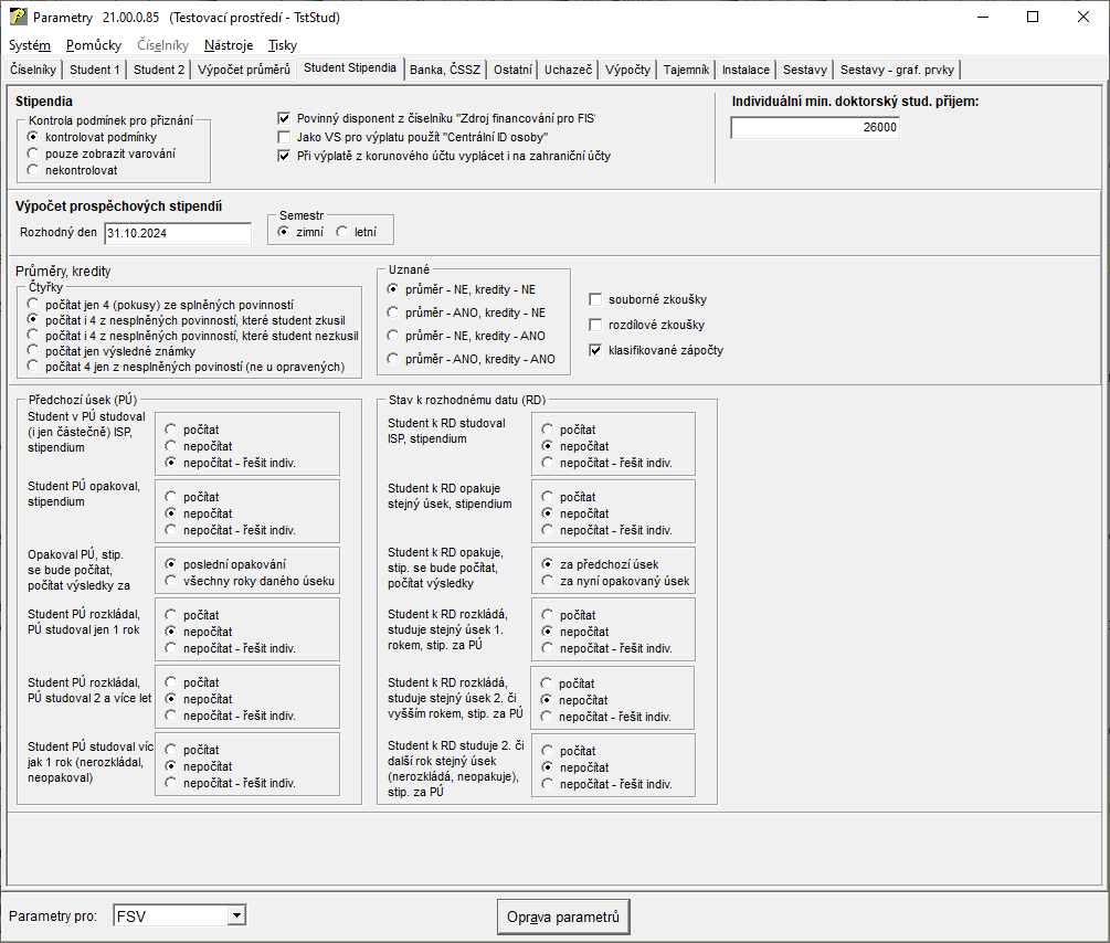 Parametry » Nastavení parametrů systému » Parametry STUDENT STIPENDIA