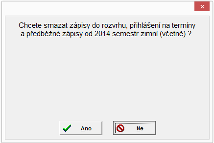 - po potvrzení "OK" program studentovi smaže zápisy do rozvrhu a termíny zkoušek od spočteného roku a semestru (včetně).