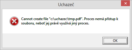 - Další možností otevření přílohy je dvojklik levého tlačítka myši na příslušný záznam. Otevřenu lze mít jen jednu přílohu daného typu. Pokud se při otevírání přílohy objeví chyba "proces nemá přístup k souboru" viz obrázek, již je otevřena nějaká příloha, kterou je potřeba napřed uzavřít.